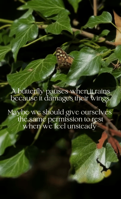 Perhaps, like the butterfly, we should allow ourselves to rest—to find safety—when life feels unsteady 💚